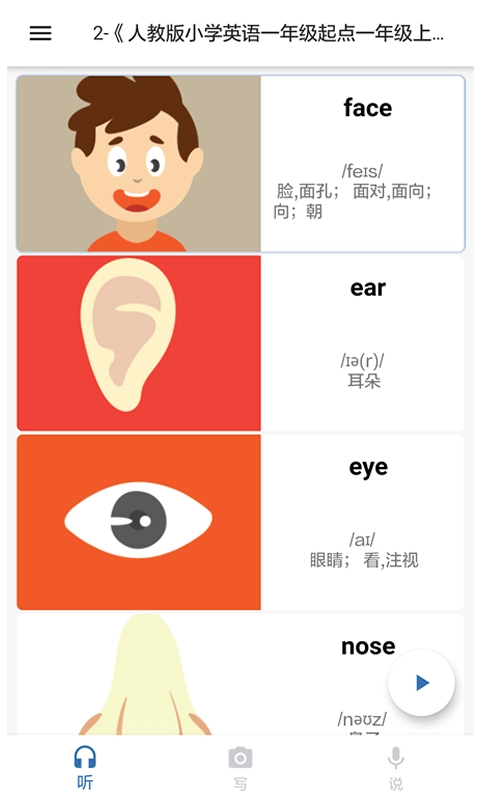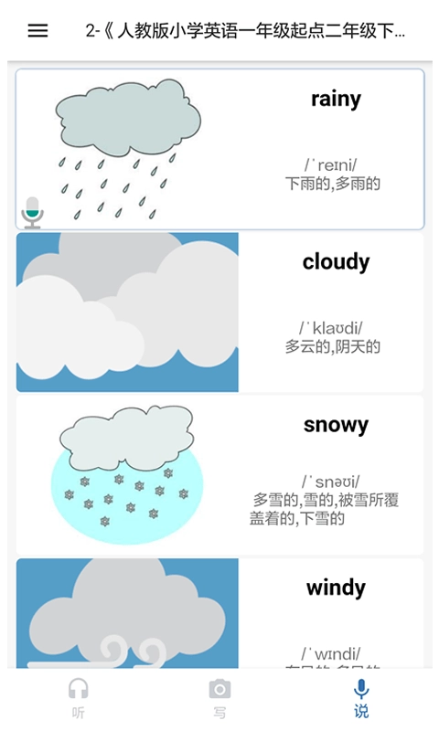我说你写是一款专门针对英语听力学习需求的教学软件,不仅致力于为用户提供全面的网络宣传与技术应用整体策划方案,还能在每次课程结束后帮助用户巩固和复习当日所学的新知识点。在这里,你可以体验到便捷的英语单词学习内容,软件内汇聚了各类常见英语单词与句型,并且针对小学、初中、高中三个阶段设置了对应的单词学习模块,有需要的用户可以进一步了解或使用。