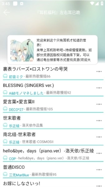 4、这款应用程序兼容多种音频格式,曲库中的各类音乐榜单都会同步记录下来供你随时收听,DJ音乐也能为你播放。