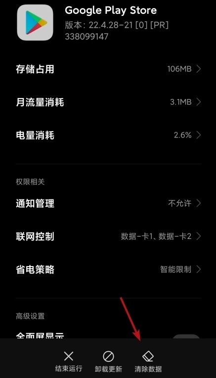 1、我们在应用管理里找到Play Store,接着点击清除数据。