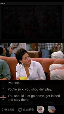 3、大家能看到有人物的每一句对话,既可以自行配音,也能观看原片。