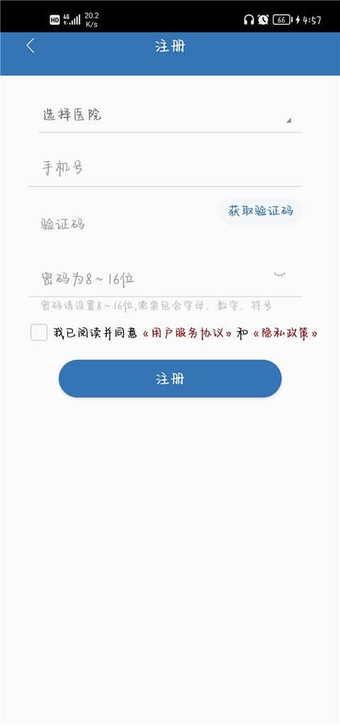 1、在本站打开移睿云医生,进入软件后选择自己所在的医院完成注册并登录。
