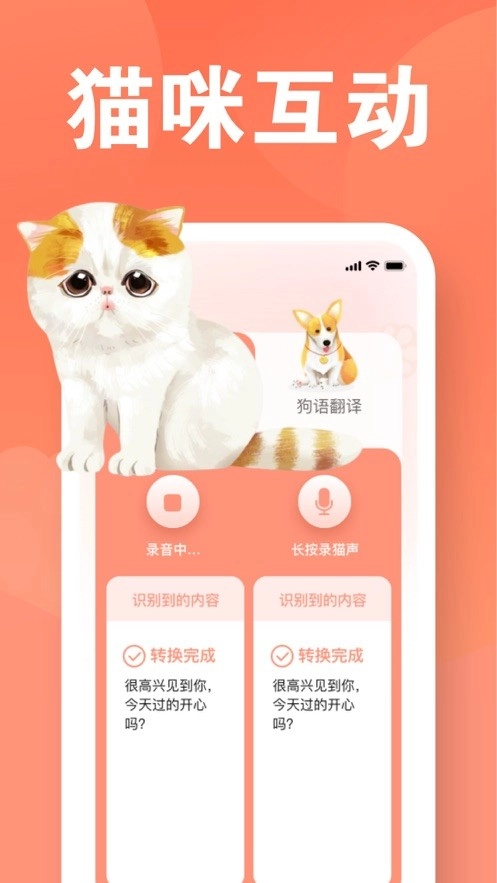 宠物翻译器的功能十分实用:其中的狗语翻译功能,能够直接把狗狗的叫声转化为文字,让人与狗狗之间的交流变得更加顺畅!