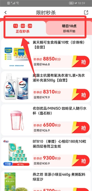 3、在秒杀页面能够查看当前进行中的活动以及预告的商品,挑选自己喜欢的目标。