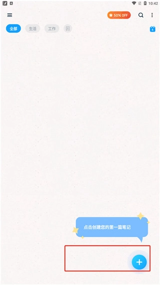 1、启动Easy Notes应用,进入主界面后,点击界面上的“+”按钮,即可开始新建笔记。