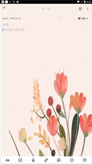 4、点击下方位置,用户可以为自己的笔记添加标题;
