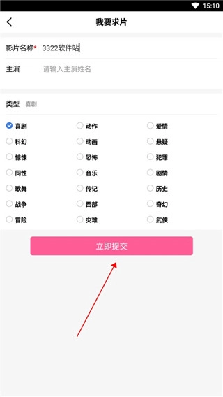 5、在此处输入您想观看的影视剧名称与分类,点击“立即提交”,我们将以最快速度完成上架。