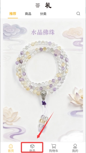 1、点击底部的商品按钮进入。