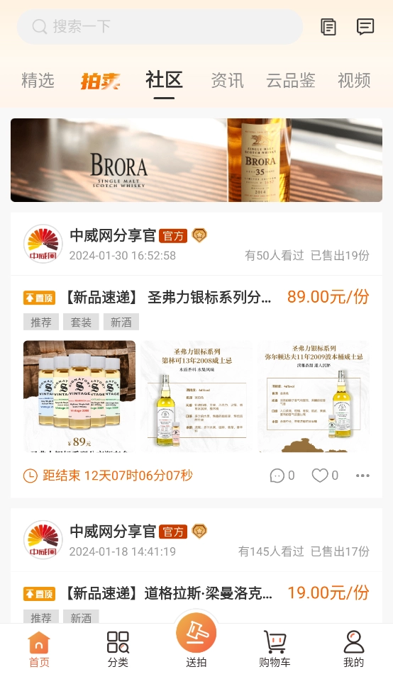 中威网是专注单一麦芽威士忌的社交电商平台,每周推出一期珍稀威士忌拍卖,带来公平公正、专业可靠的线上竞拍体验。用户能在社区里与威士忌专家及爱好者交流分享,探讨各类酒品,共同构建国内领先的威士忌垂直社区。商城提供正品保真的线上威士忌购物服务,涵盖稀酿摇号、限时抢购、拼团优惠等特色活动。