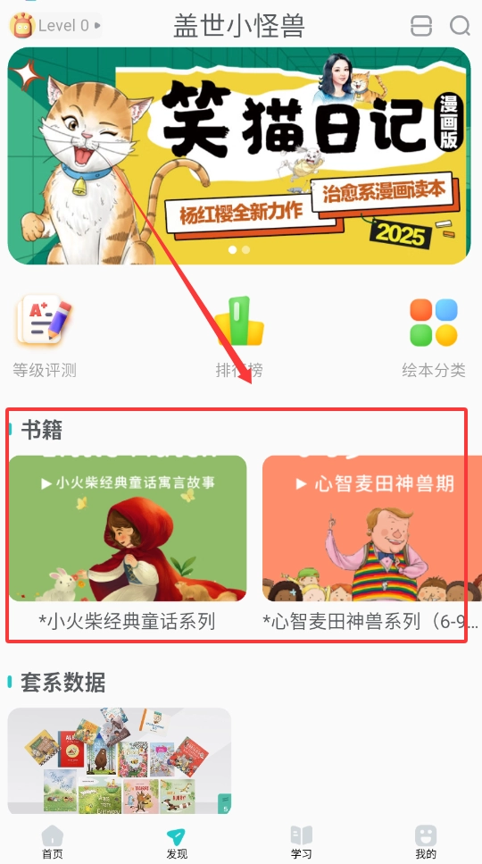 3、软件首页的中间区域会展示大量绘本,像小火柴经典童话系列就包含其中,你可以直接在此处浏览并挑选想要阅读的书籍。