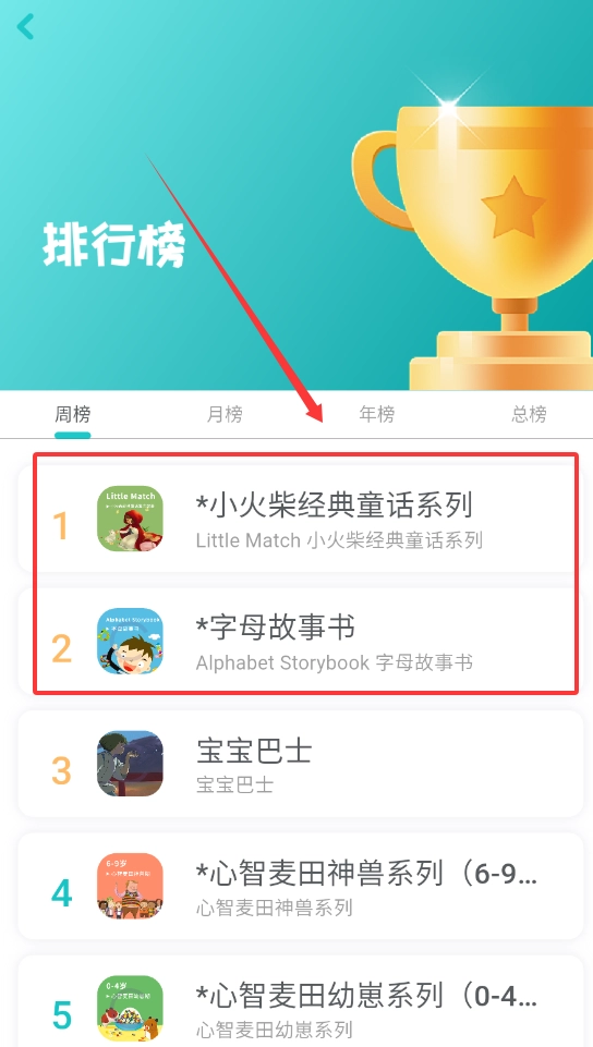 4、想浏览热门内容的话,可以点击“排行榜”选项,这里面包含了周榜、月榜、年榜等不同榜单。