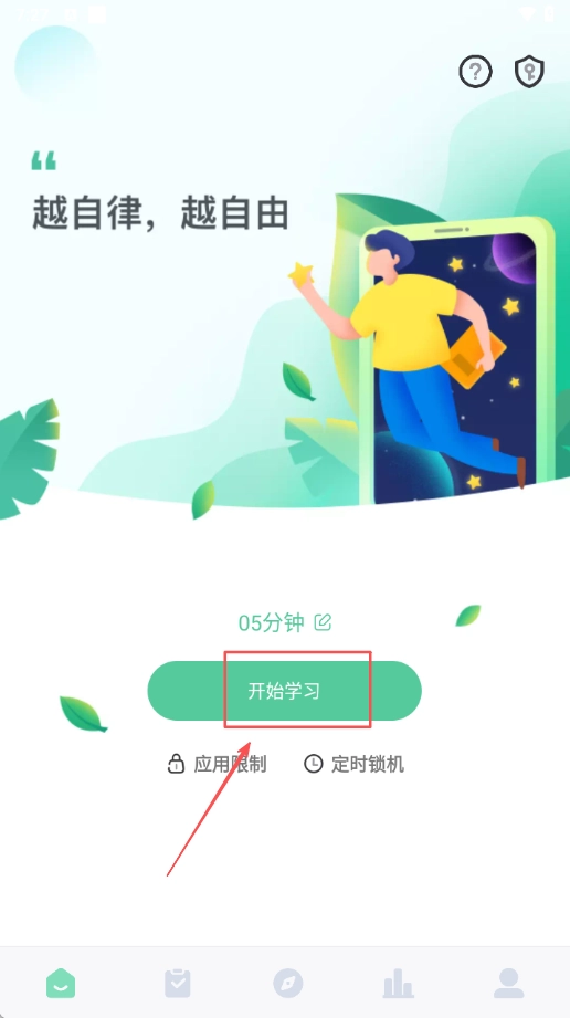 1、打开应用进入首页的定时锁机界面,设定好专注时长后启动锁机功能,在设定的时间范围内限制设备使用,以此助力专注学习。