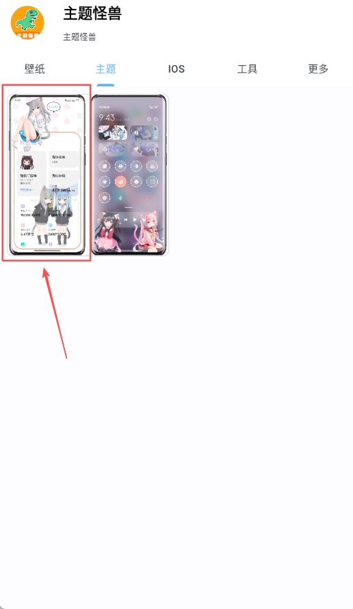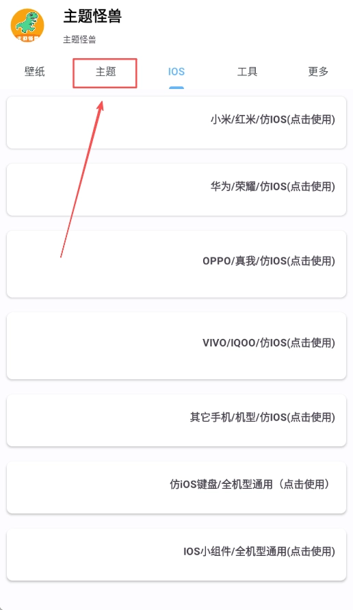 1、打开主题怪兽应用,点击主题选项进入主题浏览页面,在该页面可查看各类资源内容以及主题分类列表。