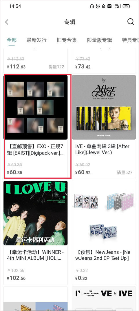 2、你既可以按照专辑的类别去查找自己喜欢的偶像专辑,也能借助搜索功能来寻找,找到后点击专辑的展示页面即可。