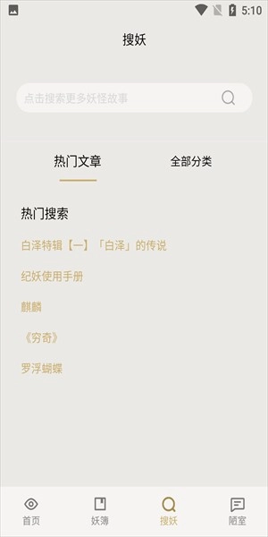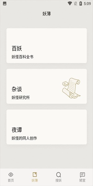 2、点击妖簿可以看见百妖全书、杂谈、夜谭等等。