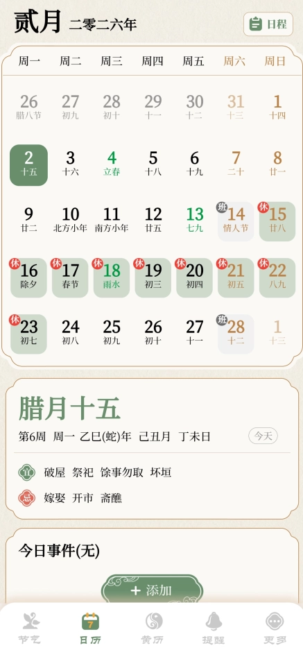 4、专业日历功能:涵盖传统万年历、吉日查询、节日节气等内容,可随时查阅;节假日、休息日标注清晰,同时收录国际节日、传统节日、佛教节日等各类节日信息,帮助用户不错过任何重要日子。
