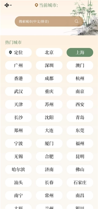 2、选择或者在上方搜索你想要查看天气的城市。