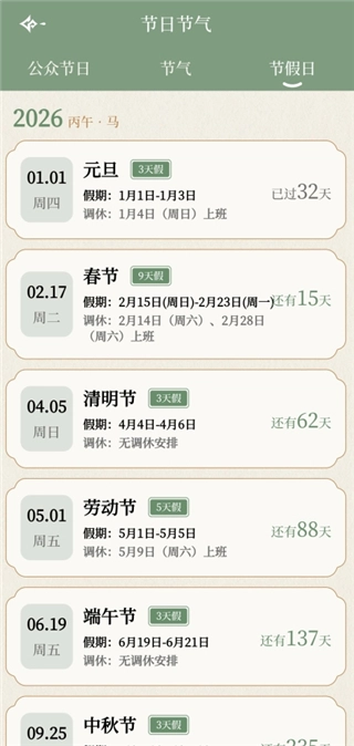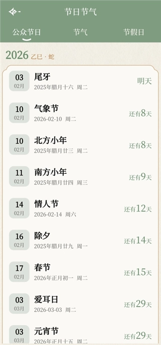 3、这里可以看公众节日、节气和节假日。