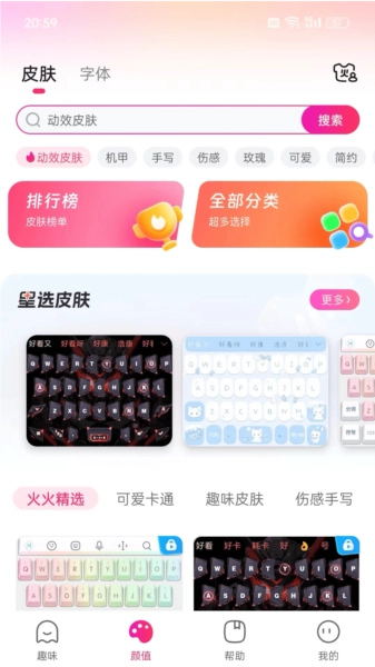 对不同的键盘皮肤、字体等资源进行细致分类,方便用户查找。