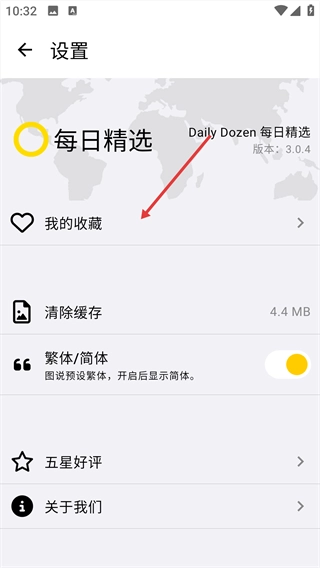 2、进入设置页面后,找到并点击【我的收藏】选项。
