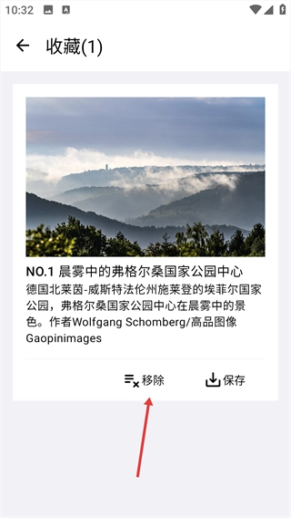 3、进入收藏页面,找到要删除的目标内容,点击该内容下方的【移除】按钮。