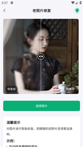 3、一键即可完成照片修复,线上操作毫无难度,人人都能快速上手。