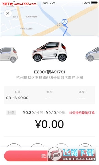 并规划取车路线,预估用户取车时间;采用分钟计费模式,每分钟价格低至0.3元起;