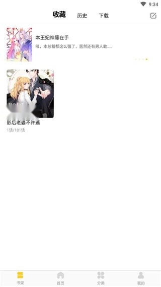 4、而在书架界面能够看到自己收藏的漫画;