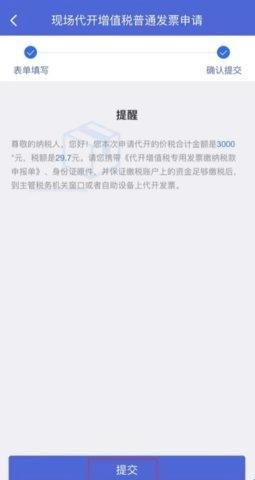 5、点击【提交】按钮,之后按照提示携带身份证件以及其他相关材料,就能在自助机上完成发票打印操作。