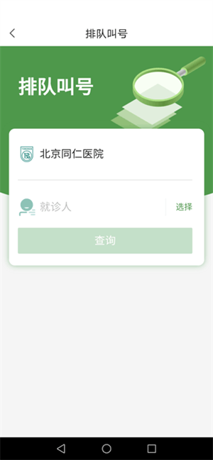 4、在首页找到并点击“排队叫号”按钮,选择就诊人后点击查询,就能查看自己的排队情况。