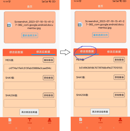 2、可以直观展示原始MD5和修改后的MD5,方便用户进行对比
