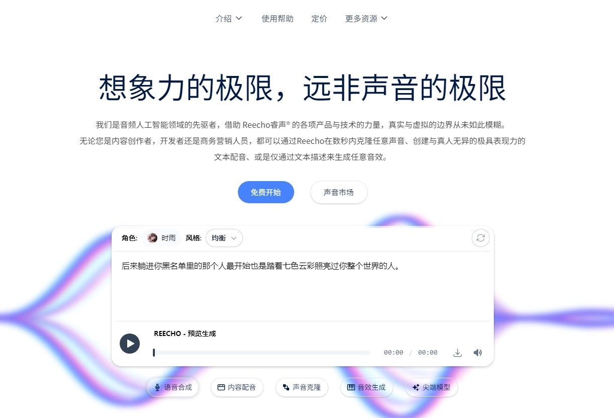 Reecho睿声是一款近期推出的AI语音软件,它具备“复制”任意声音的能力,还能将文字转化为极为逼真的人声——无论是想让某电视角色用东北话念台词,还是让宠物狗“开口说人话”,它都能实现!这款软件仅需录制5秒钟的声音,就能克隆出一模一样的声线,甚至咳嗽声、笑声这类细节都能完美还原,不管是短视频配音还是角色语音创作,都能为你提供意想不到的助力。