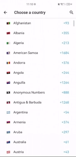 2、点击“Country”选项,选择号码对应的国家/地区(受限制影响,建议避免选择中国)。