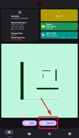 也能点击resume继续录制