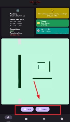 用户能够通过点击stop来停止录制,也可以点击pause暂停录制。