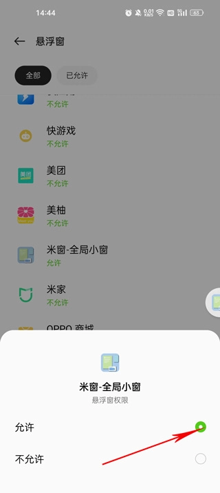 选择在悬浮按钮中可以开启小窗的应用。