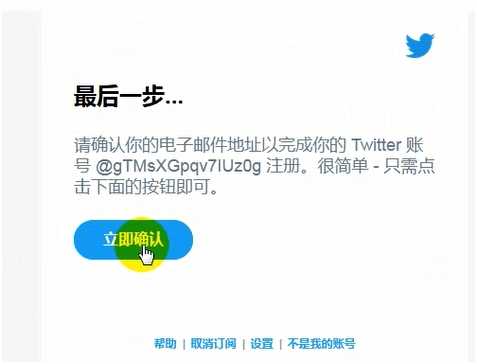 2、按照提示填写完资料后,点击注册Twitter,页面会跳转到下图所示界面,接着点击注册按钮即可。