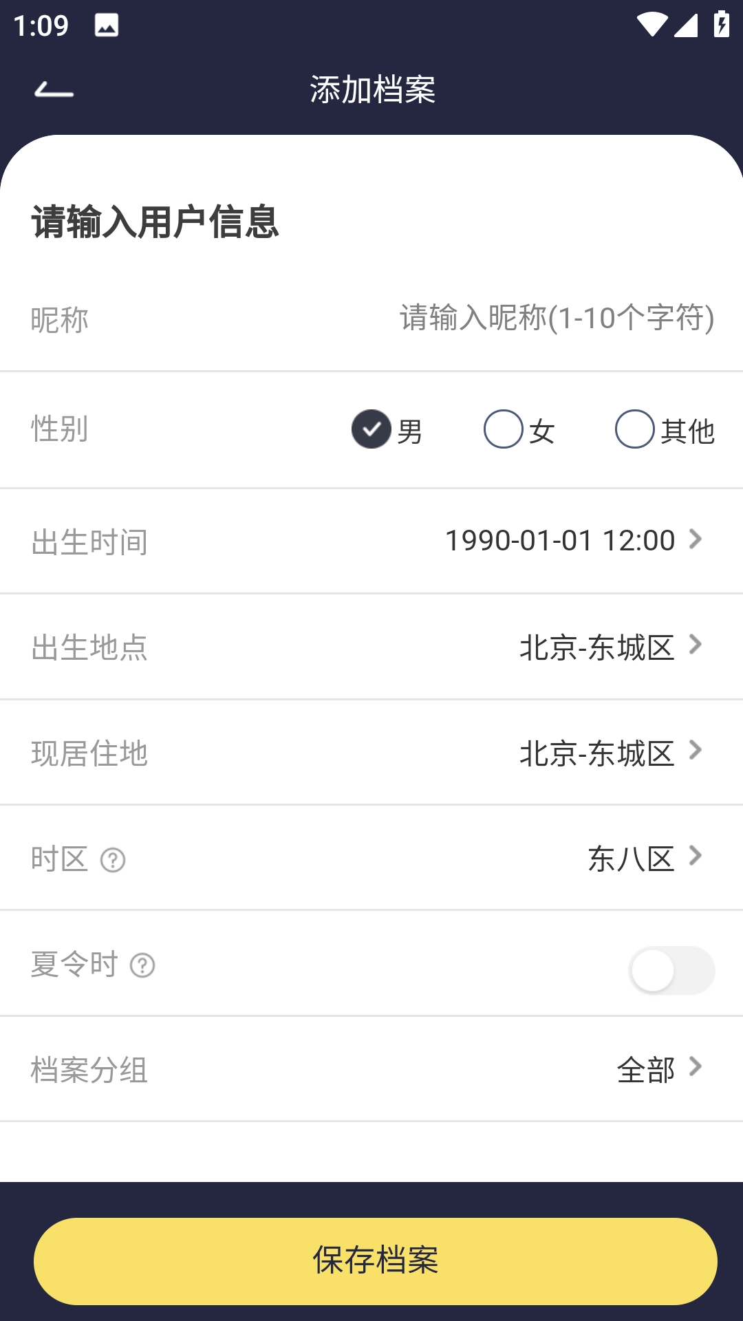 2、在【添加档案】中分别添加两个详细用户信息;