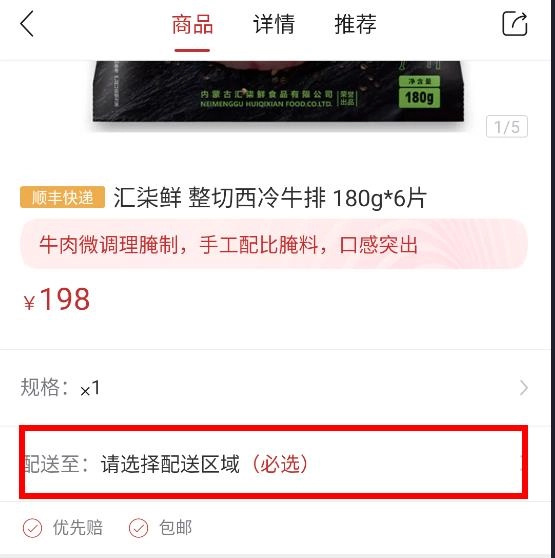 4、接着选择商品的配送地址,并填写详细的收货地址;