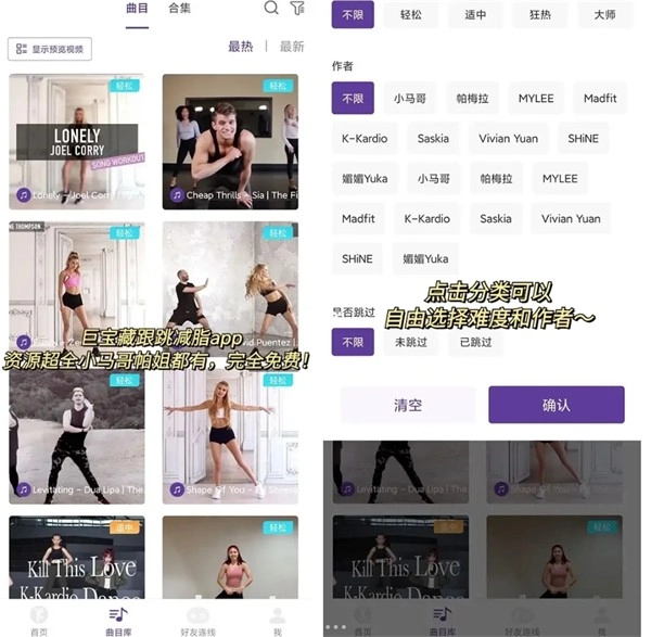 4、难度分级——从零基础跳操新手到舞池高手,曲目难度划分清晰,满足不同水平需求