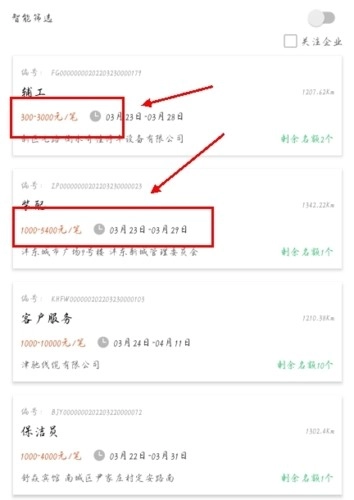 2、进入后就能看到大量工作,你也可以根据自己的需求,通过【距离】【费用】等条件进行筛选,这样能让结果更精准。