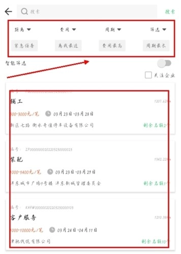 3、按地区搜索任务:通过设置城市与地区信息,依据提取的内容来搜索相关任务。