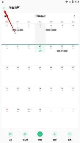 1、启动软件后,点击界面左上角的“更多”按钮,从中挑选出想要分享的日历。