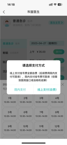 6、挂号费可通过“院内支付”和“线上支付”两种方式缴纳。