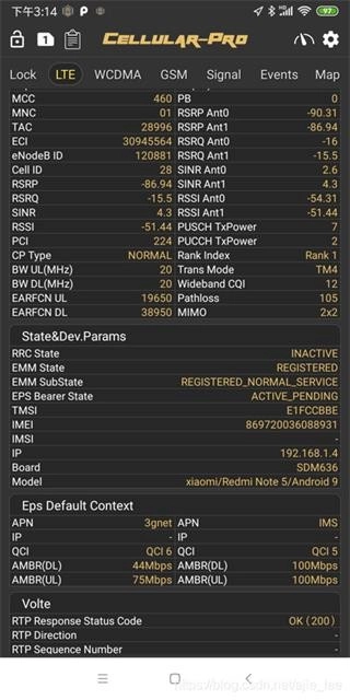 - 展示当前物理层与RRC层的部分参数,像小区(ECI)、带宽、频点、信号(RSRP)这类关键信息都包含在内。
