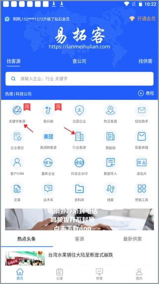 2、易拓客打破了传统获取精准客源信息的模式,借助互联网整合公开合法数据,为销售人员提供精准的客源资源。