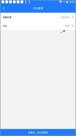 4、点击“行业客源”选项,其作用是通过选择对应的行业来获取相关资源,之后点击“开始采集”按钮即可。