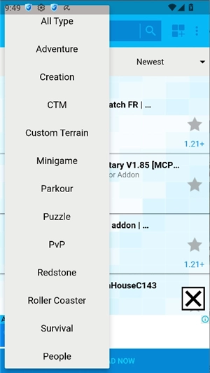 3、地图应用,有数百张地图等待您探索,涵盖迷你、冒险、生存、PVP、红石、恐怖等多种类型……