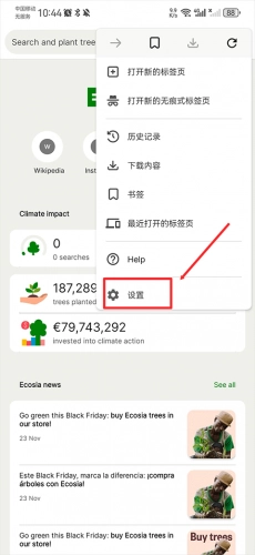 Ecosia如何设置中文 1、在界面右上角点击那三个点