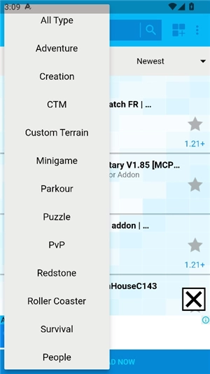 4、MCPE 地图程序:这里有数百张地图等待你探索,涵盖迷你、创造、冒险、生存、PVP、跑酷、捉迷藏等多种类型,还有不少新颖的 Minecraft 地图,像豪宅、房屋、城市、天空战争、越狱、滴管、警察与土匪等。