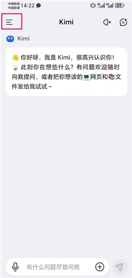 第一步,打开kimi智能助手,进入后点击列表图标。